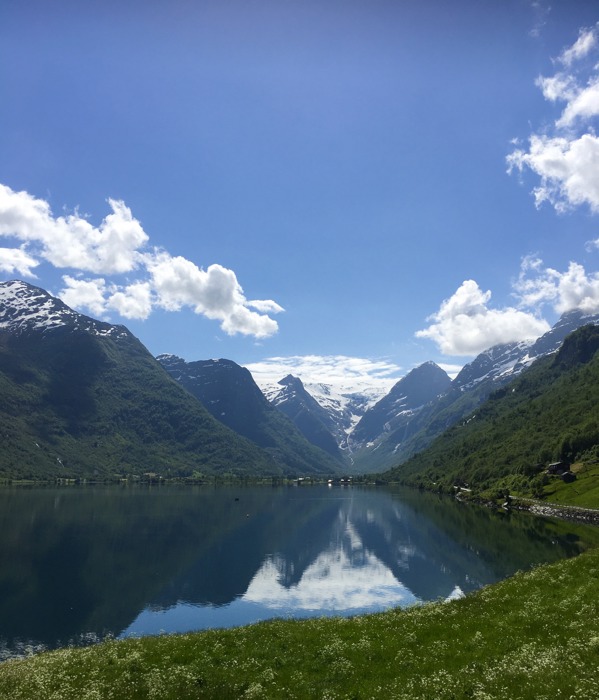 9. juni, i strålande ver, starta bussen i Førde, der dei fleste deltakarane kom på, og på Skei kom nokre til om bord – totalt var me 34 forventningsfulle pensjonistar i bussen. Guide på turen var Jens Hogreinningen frå Lodalen, han steig på i Olden. Den første brearmen me skulle oppleva var Briksdalsbreen. Det var som å køyra ‘inn i eit postkort’ innover Oldedalen på smal veg langs Oldevatnet, grønkledde bøar i floraprakt, snø og bre omkransar fjella og sol frå blå himmel – kunne ikkje få det betre. Jens ausa av kunnskapen sin om landskapet me for igjennom, både om fortid og notid. Brelandskapet har som kjent trekt seg sterkt attande i vår tid, noko som tydeleg kom fram ved at brearmane no nesten ikkje er tilgjengelege, der dei trekker seg oppetter dalsida. Inne i Briksdalen vart det strekk på beina, sjå på naturen og nyta medbrakt lunsjpakke.